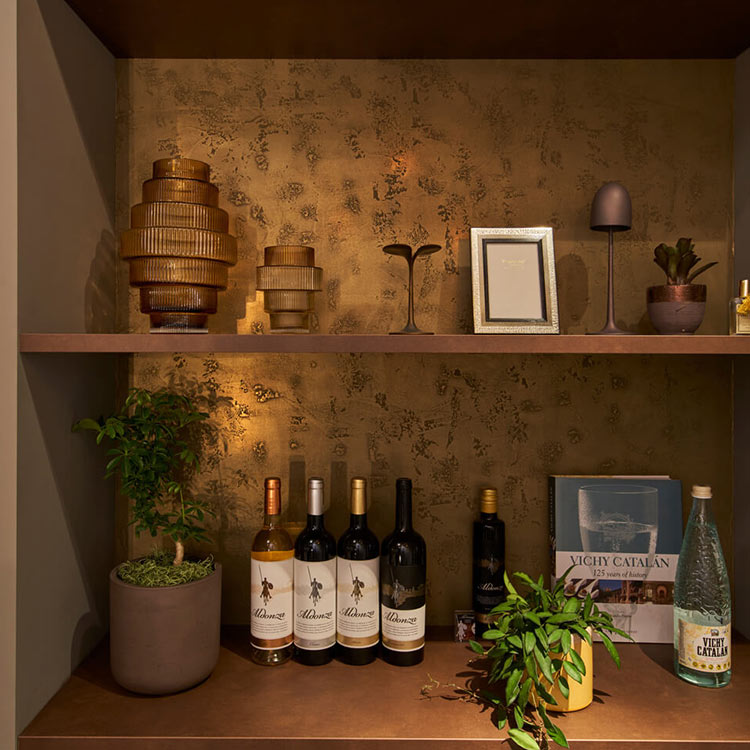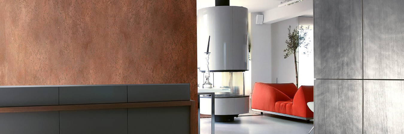 Ideal Work’s Purometallo® is an exclusive line of decorative coatings derived from metal powders. The range of colours and textures bring richness and brilliance to a wall feature and furniture.